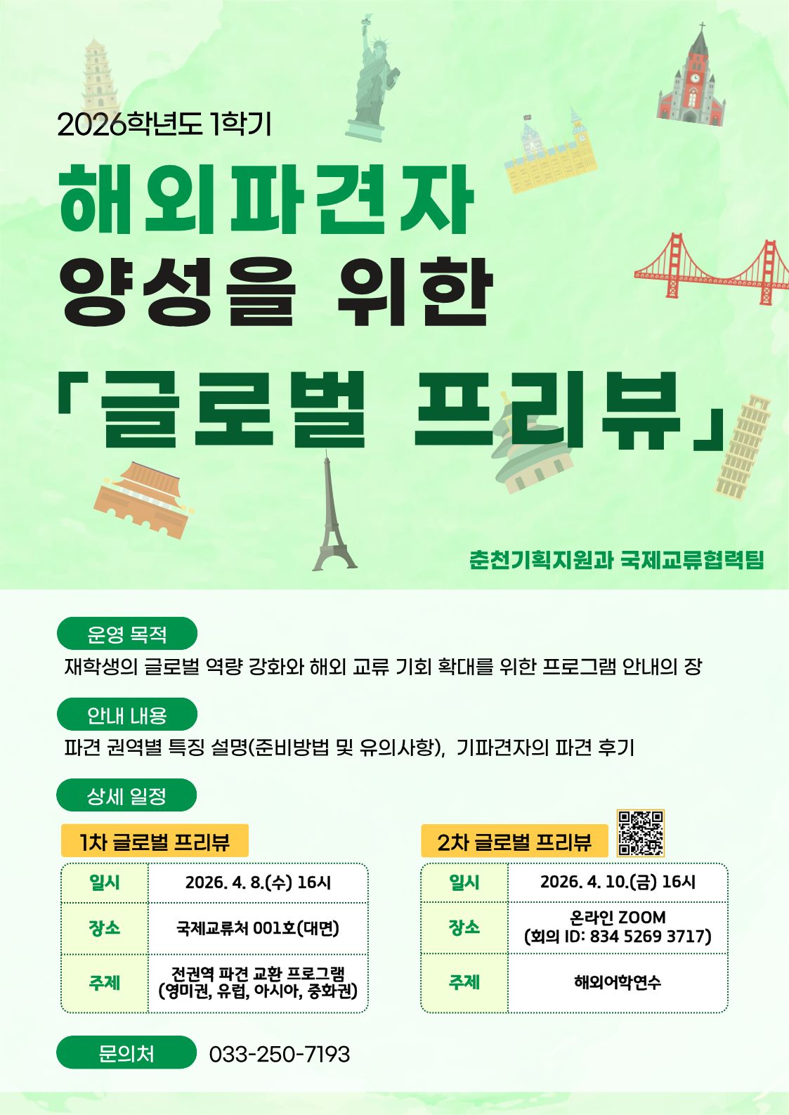 2026학년도 1학기 해외파견자 양성 프로그램「글로벌 프리뷰」홍보 협조 요청